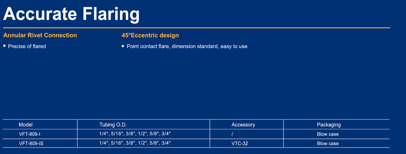 VFT-809-IS عدة فلير يدوية مع سكين قطع أنابيب